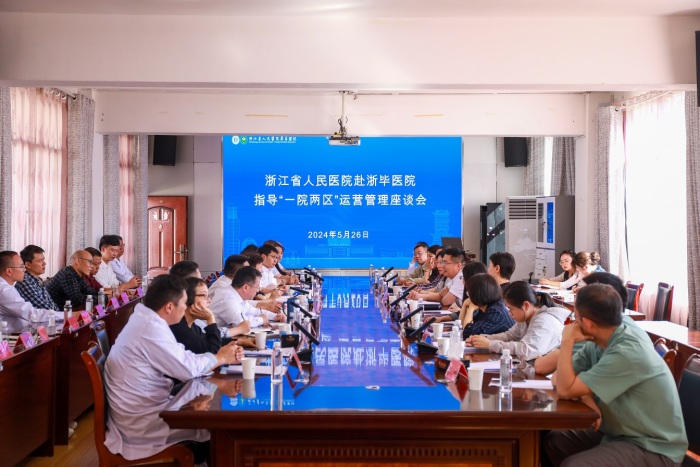 随后,在由浙毕医院党委书记吴国春主持召开的浙江省人民医院赴毕节医院指导一院两区运营管理座谈会上,在听取相关工作情况汇报后,葛明华对浙毕医院“一院两区”建设相关工作作指导。参会人员就金海湖院区建设相关事宜作交流。