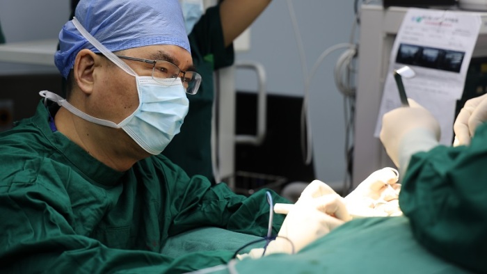 当日,在参加浙毕医院远程超声医学中心启动仪式后,葛明华到浙毕医院手术室,为浙毕医院甲状腺乳腺外科医生及“王佳峰工作室”学员开展免充气腋窝入路腔镜甲状腺癌根治术及复发性甲状腺癌手术示教和讲解。