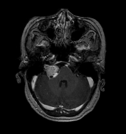 进一步完善相关检查,患者被明确确诊为颅内占位性病变:右侧听神经瘤。
