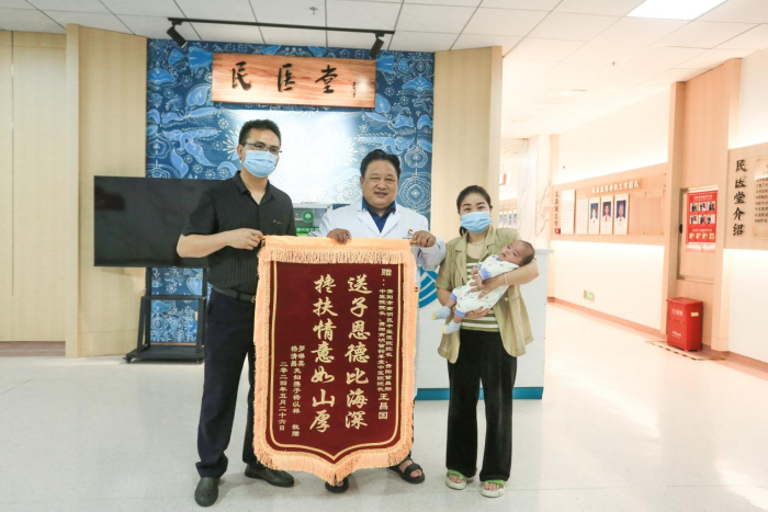 5月28日上午,贵阳市南明区中医医院民医堂来了一对夫妻,他们来自花溪区,他们手捧一面锦旗,上面书写着“送子恩德比海深,搀扶情意如山厚”,以此表达他们对医院及王昌国院长深深的感激之情。