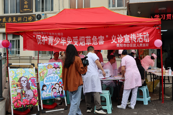 为了深化市民对控烟禁烟、毒品危害的认知,构建健康无烟、无毒生活氛围,特别是关注青少年群体健康,使其远离烟草及毒品危害,5月30日,贵阳市白云区人民医院组织呼吸内科、儿科、外科、感染科等多学科团队在院前广场开展以“保护青少年免受烟草危害”为主题的第37个世界无烟日义诊宣传活动。