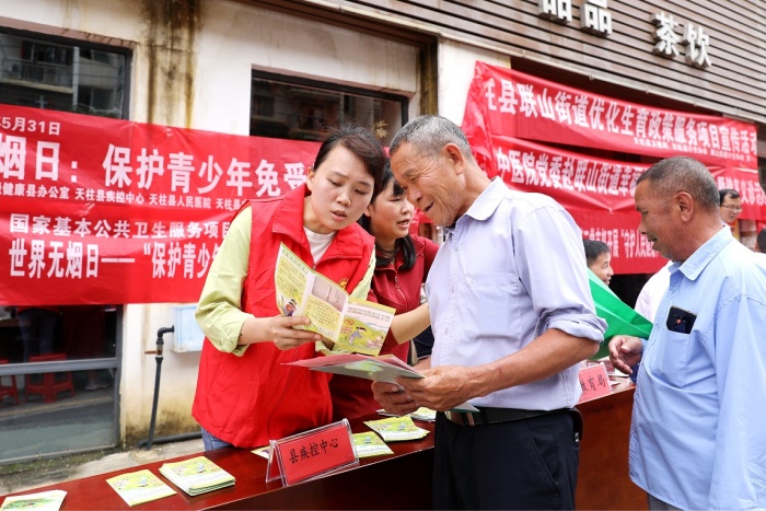 首页 > 新闻中心 > 卫生工作动态 > 正文 天柱县:倡导无烟 护航成长 来源:贵州健康报 时间:2024-05-31 浏览次数: 5月31日是第37个世界无烟日,当天,天柱县围绕“保护青少年免受烟草危害”主题开展集中宣传活动,深化控烟宣传,引导群众科学认识吸烟危害,自觉远离烟草,共同营造无烟环境,为青少年健康成长保驾护航。图为工作人员向群众宣传吸烟的危害。(本报通讯员 潘存栋)编 辑:周 岩二 审:文 叶三 审:高学军 分享到: