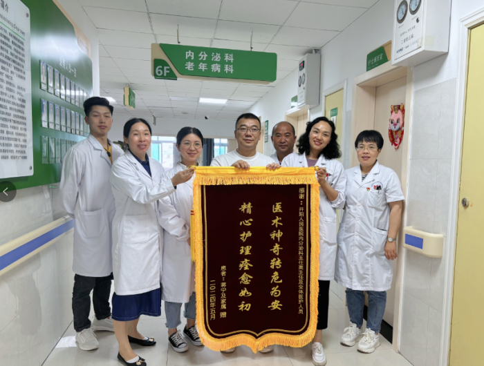 “医术神奇转危为安,精心护理痊愈如初”,红色锦旗上金色的赞誉传递的不仅是患者的感激之情,更是对内分泌科医护人员工作的肯定。