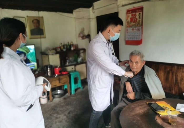 近日,偏坡布依族乡卫生院家医团队医护人员为一位有十年以上“脑卒中后遗症、哮喘、高血压”病史的老人开展上门服务时,了解到他近几日出现咳嗽、咳痰、痰多黄黏、偶有气促等不适感,因该老人有十多年“脑卒中后遗症”病史,现右侧肢体活动不利,不方便出行到医院就诊,偏坡卫生院立即申请医共体上级医院的医生进行入户指导。在患者家中,为患者测量基本生命体征,进行初步的体格检查,随即向患者提供诊疗方案、用药指导,并针对所患疾病向患者及其家人开展相关健康知识宣讲,使患者在家就能享受到优质便捷的医疗服务。