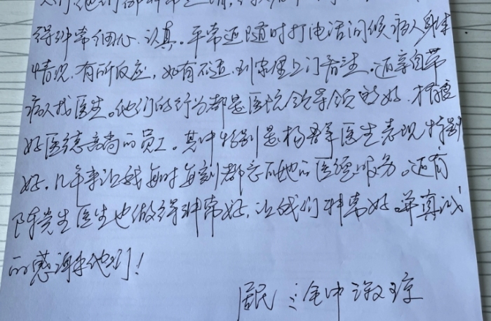 高新社区卫生服务中心挑选临床工作经验丰富,具有相关资质的医生组建家医团队,对患病老人切实开展随访以及“敲门服务”。陈贵生、杨群等医生以精湛的专业技术指导以及良好的服务态度获得就医患者的书信表扬与肯定。这是对医护工作的高度认可,更是对医护人员的一种激励,这不是开始,也不会是结束。