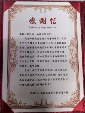 6月3日,一面来自西藏的锦旗和一封感谢信送到了贵阳市妇幼保健院儿童康复医学科护士刘文幸手中,信中向我们讲述了一个在旅途中发生的温暖故事。