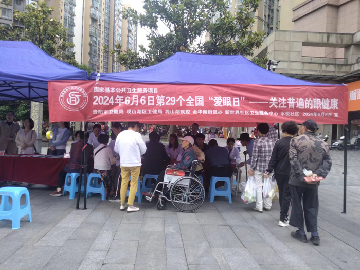 今年6月6日是第29个“全国爱眼日”,当天上午,贵阳市观山湖区卫健局联合贵阳市卫健局、观山湖疾控、金华园街道办、新世界社区卫生服务中心、水悦社区等单位,围绕主题内容举行2024年第29个全国爱眼日主题宣传活动。