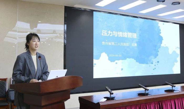 6月4日,贵州医科大学附属肿瘤医院心理顾问、贵州省第二人民医院临床心理科、心理咨询与治疗科、危机干预中心副主任陈赛受邀来到医院,为广大职工带来了一场主题为《压力与情绪管理》的讲座,讲座由纪委书记、工会主席张芬芳主持。这是贵州医科大学附属肿瘤开展的第二期职工心理辅导专题讲座。此次讲座旨在帮助医护人员更好地认识和应对工作中的压力,提高心理健康水平,为患者提供更加优质的服务。