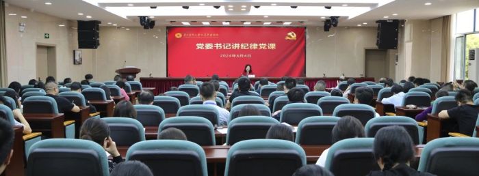 6月4日下午,贵州医科大学附属肿瘤医院党委书记金风在放疗楼多功能会议室为党员干部讲授党纪学习教育纪律党课,她围绕“深入学习贯彻习近平总书记关于加强党的纪律建设的重要论述,推动党纪学习教育走深走实”作重点讲述。院班子成员,各科室主任、副主任、护士长,各党支部书记参加。
