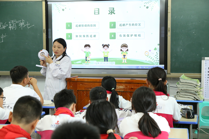 6月6日下午,在第29个全国“爱眼日”来临之际,为进一步增强青少年儿童爱眼护眼意识,引导学生科学合理用眼,开阳县人民医院眼耳鼻喉科医务人员走进开阳第二小学,为该校学生带来一场生动有趣、干货满满的近视防控专题讲座。