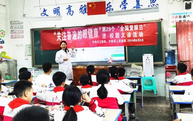 6月6日,时值第29个全国爱眼日之际,开阳县人民医院健康科普小分队立足关注青少年眼健康、儿童口腔疾病防治、季节性传染病防控、血型科普等健康科普知识,深入开阳县第二小学,通过“课堂科普+疾病筛查”的形式,采取灵活多样的举措,将主题党日活动“+N”作为深化“校地协同、医教联合”暨健康副校长重点工作一并开展,切实让党支部组织生活实质化、行动化,真正激活县级公立医院基层党组织的神经末梢,不断提升战斗力和凝聚力。
