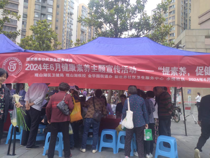 为了提升辖区居民的健康素养水平,6月6日,贵阳市观山湖区卫健局联合区疾控、金华园街道办、新世界社区卫生服务中心、水悦社区等单位,举行以“提素养,促健康”为主题的2024年6月健康素养主题宣传活动。