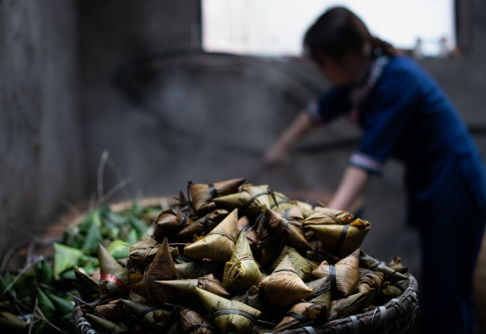 61岁的龙梅娥是贵州省天柱县邦洞街道织云村鱼塘侗寨下寨组的一个侗家妇女。她制作粽粑销售已经十年有余。一年一度的端午节又来临,订购粽子的订单不停地传来,她马不停蹄地忙开了,找来邻居帮忙,摘粑叶、洗粑叶、淘米、包粽子、煮粽子,把粽粑打包,送到邦洞集镇、天柱县城等地的一个个客户的手中。