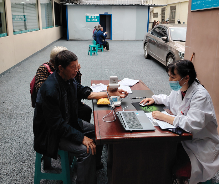 一次偶然的机会,身为卫生院院长的杨秀庭得知了脉诊仪,在积极向县卫生健康部门领导汇报后,踏上了赴南京考察的路程,实地走访了器械生产厂家、实际使用的社区卫生服务中心等,并于5月上旬引进了适合于老年人体检的脉诊仪。