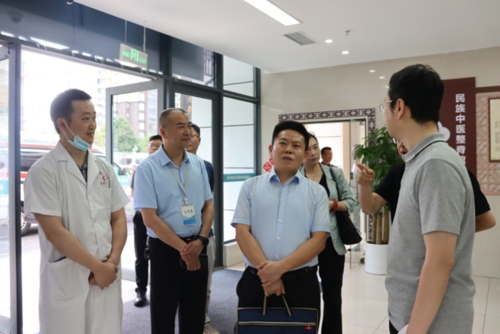 刘代顺一行实地走访调研了白云区人民医院重症医学科、中医整脊科,对医院差异化特色专科发展予以肯定,并就医院规划、学科发展和人才培养等进行了座谈交流。白云区卫生健康局党委书记、局长兼贵阳市白云区人民医院党委书记李飞主持会议,院领导班子成员、各科室负责人参加座谈。