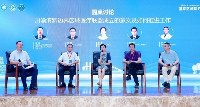 会上,贵阳市乌当区人民医院党委副书记、院长于浩作为医疗机构管理者代表,与重庆市南川区人民医院党委书记廖勇、成都市第四人民医院党委书记谢雪、昆明医科大学第二附属医院副院长赵宁辉一起围绕《川渝滇黔边界区域医疗联盟成立的意义及如何推进工作》这一主题进行了深入讨论。一致认为,强化机制建设、优化资源配置、促进政策协同是推动区域医疗一体化发展和公立医院高质量发展的关键。