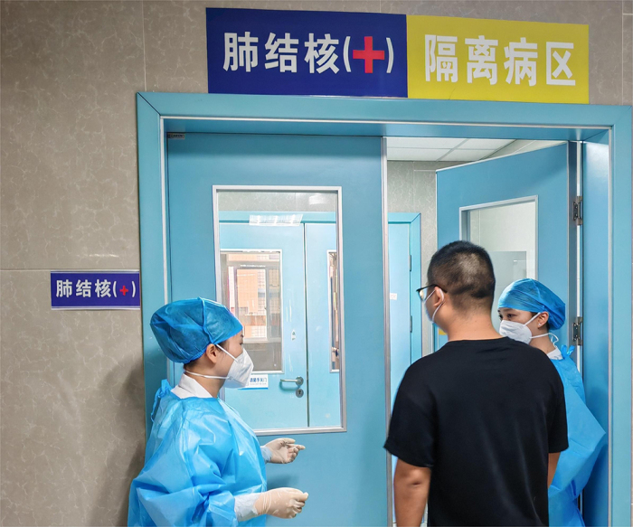 演练现场模拟呼吸内科收治1名疑似肺结核病人,患者表现为咳嗽、咳痰、发热、咯血等症状,呼吸内科医生初步判断患者可能患有肺结核,采取相应的隔离、消毒措施,并立即请感染科主任会诊,经会诊后考虑为肺结核,并转诊到感染科进行病原学阳性肺结核集中住院治疗,转入后立即对患者进行国家免费检查项目分子生物学GeneXpert检查,免费结核药物治疗,每日定期对病房环境进行紫外线消毒,对患者进行肺结核相关知识宣教,嘱患者高营养饮食,保持乐观心态,积极战胜疾病。