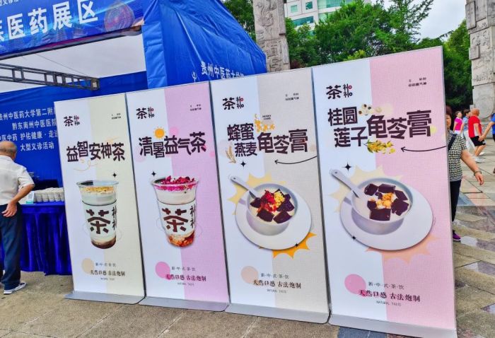 义诊现场还有益智安神饮、清暑益气茶及多种口味的龟苓膏,皆以药食同源的中药饮片为基础调配,让中医养生回归于国人生活日常。