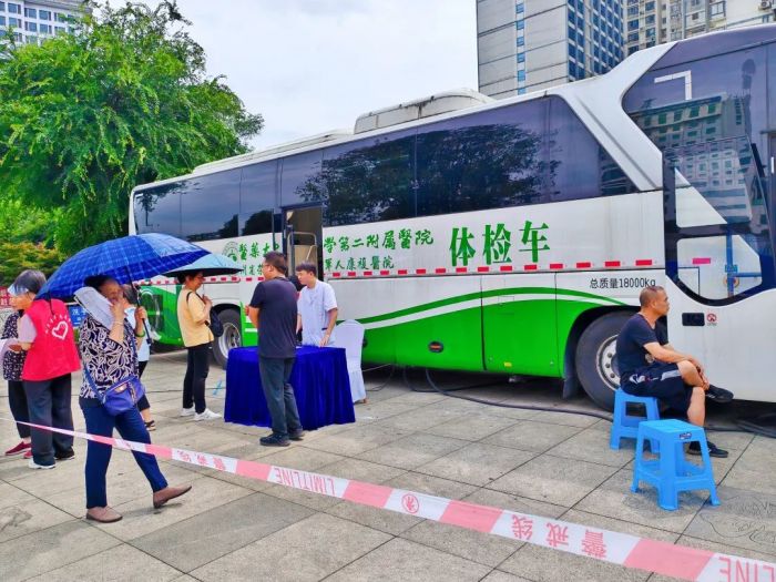 义诊场地外,移动体检车、移动CT同时有序运行,为患者进行免费血常规、肝肾功能、血脂、甲状腺及颈部血管超声、全身DR照片及CT等辅助检查。