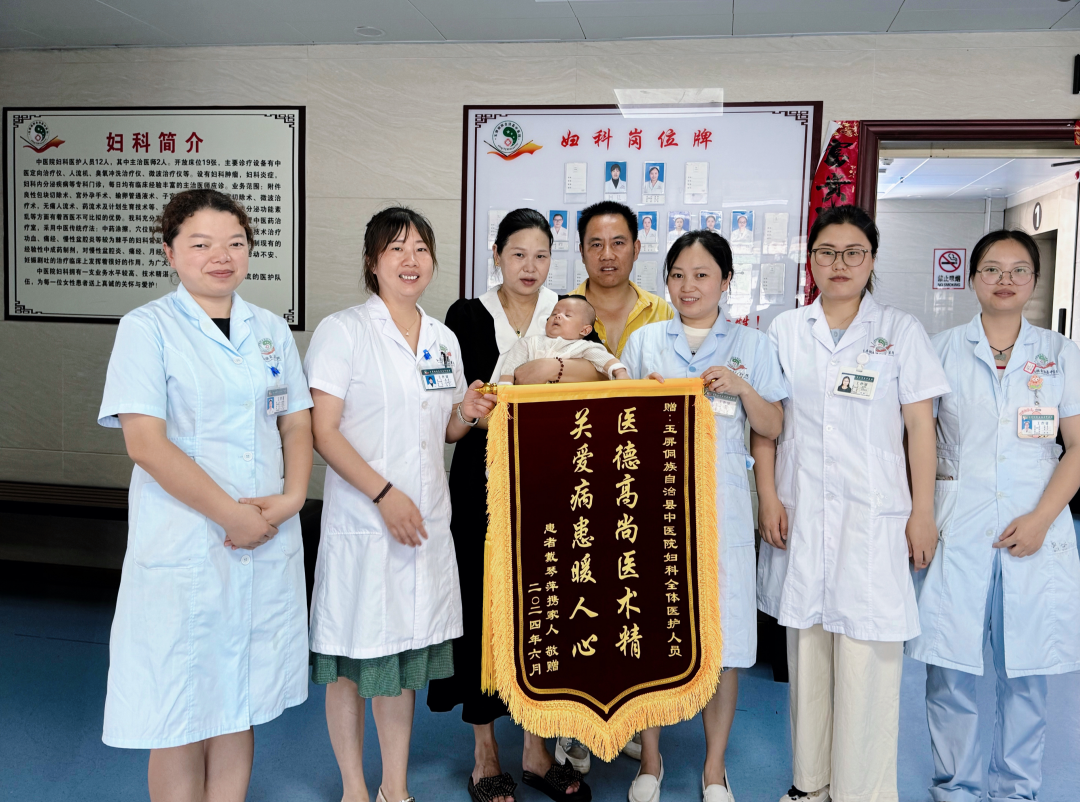 近日,玉屏侗族自治县中医院妇科收到了一面锦旗,上面书写“医德高尚医术精, 关爱病患暖人心”,背后是一位母亲深深的感激。她感谢玉屏侗族自治县中医院妇科帮助她成功受孕,并一路保驾护航,让她顺利生下可爱的儿子。