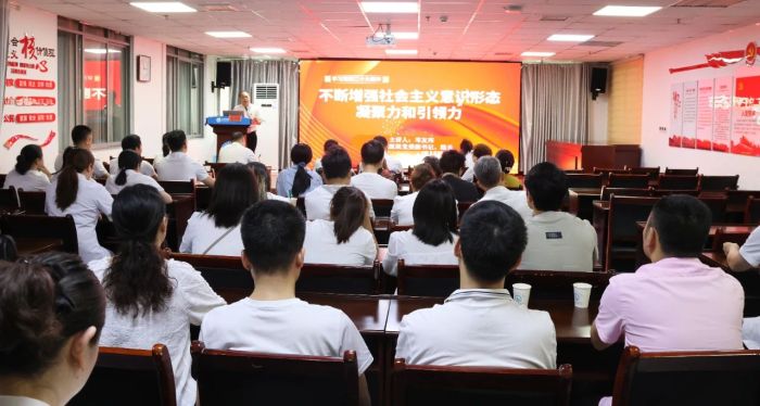 玉屏自治县人民医院党委副书记、院长邓友邦作了题为《不断增强社会主义意识形态凝聚力和引领力》的专题党课。他要求,医院各党支部、各科室要增强落实意识形态工作责任制的自觉性,持续强化理论武装,抓细抓实抓好网络意识形态工作。每一位党员、干部职工要自觉提高政治站位,牢固树立意识形态领域无小事的意识,为社会传递正能量,为医院各项事业高质量发展营造安全稳定和谐的环境。