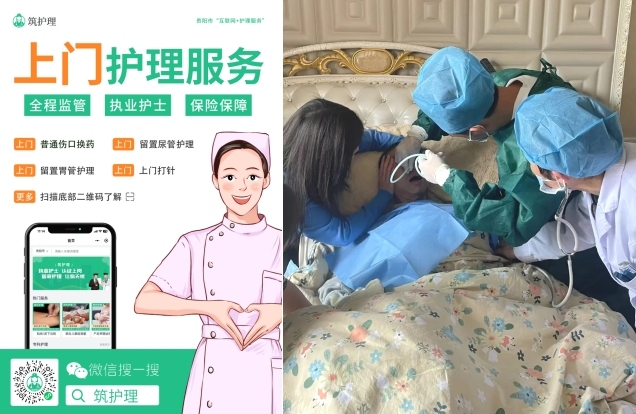 图左为“筑护理”上门服务;图右为市民通过“筑护理”预约贵阳市第四人民医院医护人员护士上门进行更换留置胃管服务。