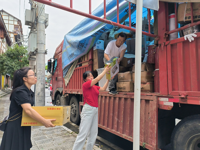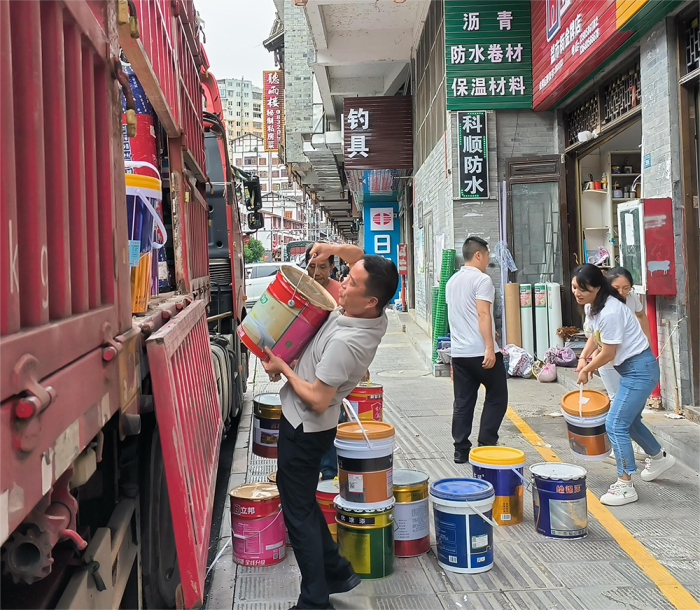 转运现场,他们步伐坚定而有力,汗水湿透了衣衫,但他们的眼神中充满了决心和担当。他们分工明确,配合默契,有人争先恐后地搬运着沉重大米、装修材料、木炭等物品,有人仔细地清点着物资数量,有人则轻声安慰着焦虑的商户。