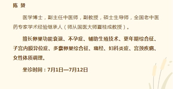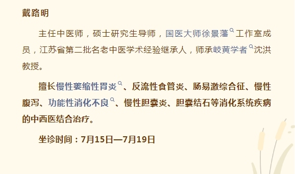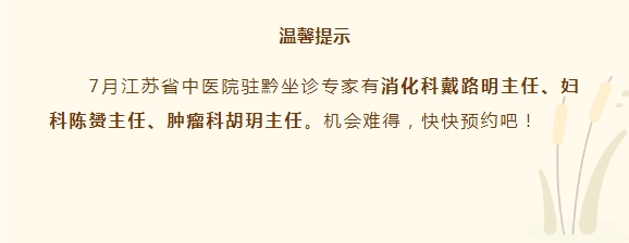 首页 > 新闻中心 > 卫生工作动态 > 正文 7月江苏省中医院消化科、妇科、肿瘤科驻黔坐诊专家信息 来源:贵州健康报 时间:2024-07-04 浏览次数: 坐诊时间及预约挂号坐诊时间:戴路明7月16日(周二)上午陈 赟7月3日(周三)上午7月5日(周五)上午7月10日(周三)上午7月12日(周五)上午胡 玥7月—9月预约方式:方法一:电话预约挂号0851-82269999方法二:扫码预约挂号医院微信公众号医院微信小程序(来源:贵州医科大学附属肿瘤医院)编 辑:向 烨二 审:毕 锋三 审:赵 亮 分享到: