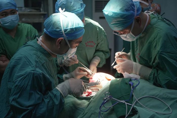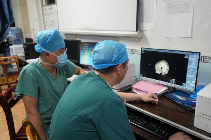 整形皮肤美容科杨喆博士亲自上台主刀,带领团队医生与神经外科梁敬心医师团队一起默契配合开始急诊手术救治。手术室内,气氛紧张到了极点。无影灯下,各种精密仪器闪烁着冰冷的光芒,滴答滴答的声音如同倒计时的钟声,敲打着每个人的心房。医护人员们全副武装,神情严肃而专注。杨喆博士目光如炬,手中的手术器械精准地游走在孩子那伤痕累累的小身躯上。经过仔细清理碎骨片、泥沙等异物,修补颅骨和深层缺损,转移复合组织皮瓣和整形美容精细缝合等手术,5个小时的鏖战,孩子的创伤得以救治,在生命体征平稳的基础上实现美容精细缝合。