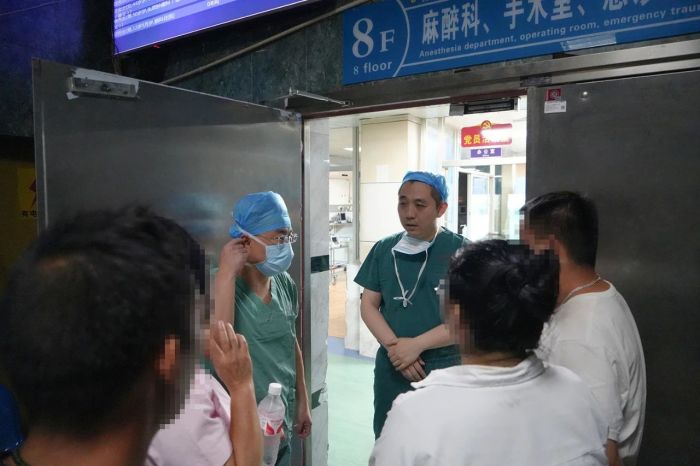 杨喆博士告知家属受伤情况及手术方案