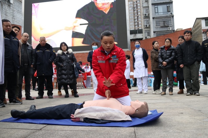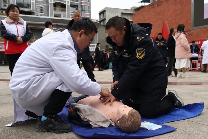 国家急救日倡议活动中,省人民医院帮扶专家对群众进行现场教学