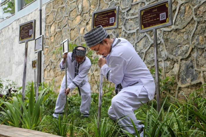 当天,天柱县中医院的工作人员以及天柱县民族医药学会成员为基地内的侗药植株插上标识牌。标识牌上有侗药名称、别名、基源和功效等信息,如果想了解更多,还可以用手机微信扫一扫标识牌上的二维码,二维码上详细记录了药物植株的来源、原植物特征、生境与分布、民族用药经验等“身份信息”。