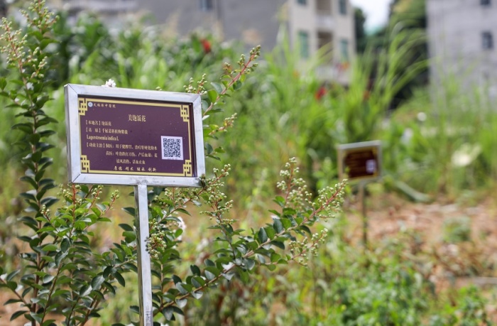 现场可以看到,饱饭花、接骨茶、开喉箭等各种药材在阳光的照耀下生机勃勃,而它们旁边的标识牌则成为了一道独特的风景线。