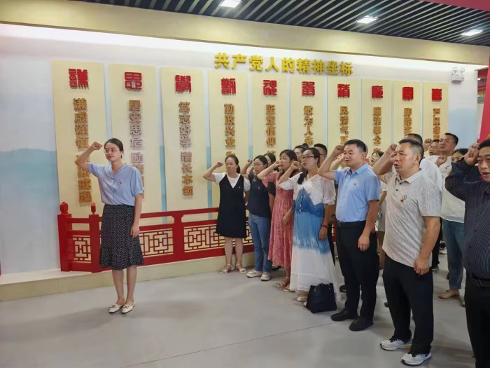 随后,全体党员面对党旗,举起右手,在领誓人的带领下,重温入党誓词,进一步坚定理想信念,筑牢廉洁底线。