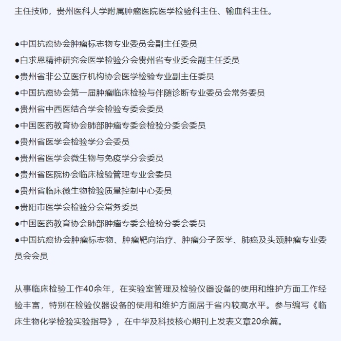 科室在室间质量评价中各检测项目均取得优秀成绩,在贵州省临床检验中心检验结果互认中获得检验结果互认证书。承担多项GCP实验,并协助全院其它科室完成GCP项目相关的检验任务。在SCI及中华核心期刊发表文章数十篇,参与多部专业书籍和教材编写。