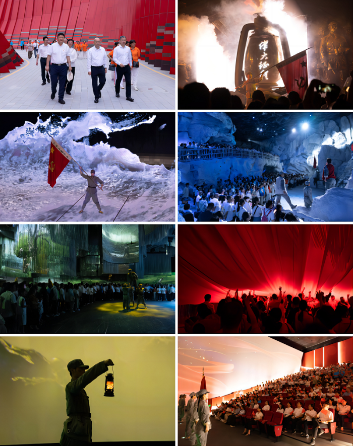 活动中,大家跟随指引,依次参观全域行浸数字演艺《红飘带·伟大征程》和飞行演艺《红飘带·多彩飞越》。通过体验全域行浸数字演艺,共同学习了“遵义会议”“四渡赤水”“巧渡金沙江”等重大革命历史事件,回顾了红军长征在贵州境内的革命壮举,重温了长征胜利的伟大史诗。数字化全景再现让大家身临其境般感受了老一辈革命先烈壮志救国的热血奋勇和无私无畏,带领大家沉浸式感悟红军长征精神。