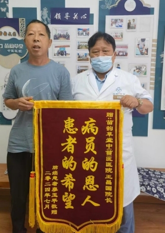 在今天的赠旗仪式上,廖先生难掩激动之情地说:“我得这个病后,身体真的特别难受。但是自从吃了王院长的苗药并接受中医治疗以来,我的身体逐渐好转了。这让我重新看到了生活的希望,我真的特别感谢王院长和医院的医护人员!”