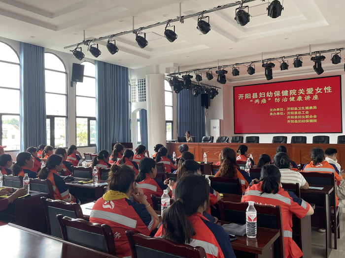 2024年开阳县“两癌”免费筛查项目已启动,为进一步普及女性健康保健知识,传递“早预防、早发现、早治疗”理念,7月12日,开阳县妇幼保健院联合县总工会、妇联、城管局为北控城市环境服务公司女环卫工人开展了“两癌”防治知识讲座专场,共50余名女环卫工人参加。