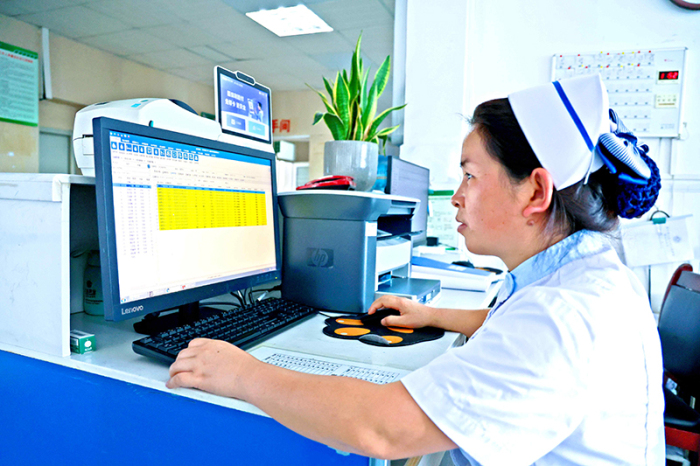 护士将糖尿病患者血糖数据采集后通过远程电脑数据传输