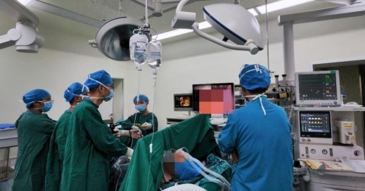 虽然术前做足了准备工作,但是术中老人还是出现了严重的心律失常。情况十分危急,如果不采取措施,老人有可能下不了手术台!为了不影响台上医生的手术,麻醉科刘继明副主任带领当台余睿医师,沉着应战,注意动态调整用药,密切监测麻醉监护仪,将心律失常控制在可控范围内。肝胆外科高光剑副主任临危不乱,用娴熟的技术在最短的时间内完成了该微创手术。