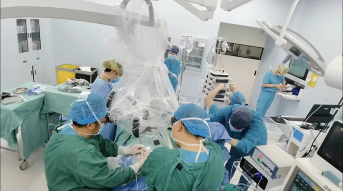 患儿病情急危,必须争分夺秒抢救。为争取在第一时间帮助雷雷解除脊髓受压,获取最佳预后,儿童神经外科团队紧急召集上海派驻专家团队,以及医院介入科、影像科、麻醉科、重症医学科等团队联合会诊、紧密协作。入院3小时,救治团队帮助患儿顺利完成急诊全脊柱MRI平扫及增强检查,全脊髓血管造影检查,并顺利实施急诊神经内镜联合显微镜下胸5-7节段椎管内硬膜外血管畸形切除术。