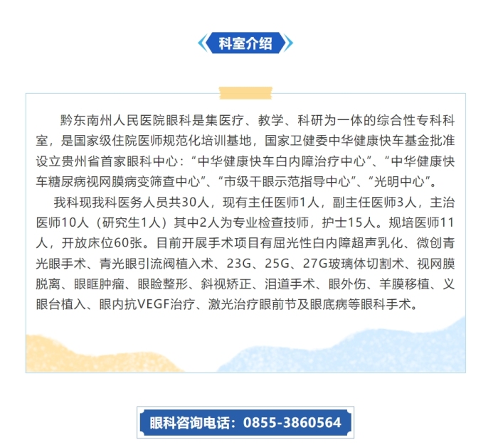 近日,黔东南州人民医院(贵州医科大学附属医院黔东南医院)眼科团队,在全省率先成功为两位青光眼患者实施“小青白”微创手术,“小青白”微创手术的成功实施,标志着我院在青光眼治疗领域迈上了一个新台阶。