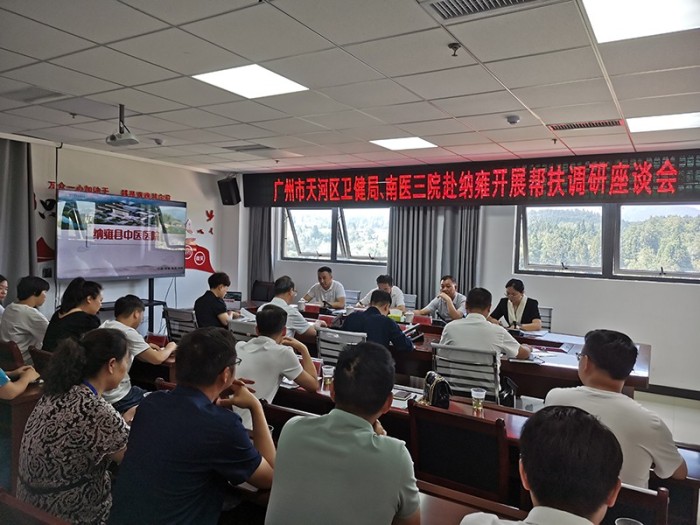 7月26日,南方医科大学第三附属医院(以下简称“南医三院”)党委书记胡海源,广州市天河区卫生健康局党组成员、副局长王志斌一行到贵州省毕节市纳雍县中医医院开展调研活动,纳雍县委常委、县人民政府副县长罗子龙,纳雍县人民政府副县长林炼深,纳雍县卫生健康局及相关医疗机构负责人陪同。