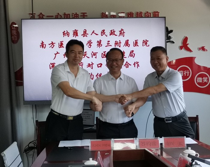 听取汇报后,胡海源表示,对口帮扶虽任重道远,但大有可为,南医三院将坚决落实天河区委、区政府的部署,选派骨干和学科带头人入驻纳雍县中医医院,同时组织开展人才交流培训,力争通过3至5年的合作交流,将该院打造成为区域性的、具有影响力的骨科强院。会上,林炼深、胡海源、王志斌分别代表县人民政府、南医三院和天河区卫健局签订了《深化医疗对口帮扶合作框架协议》,座谈会由罗子龙主持。