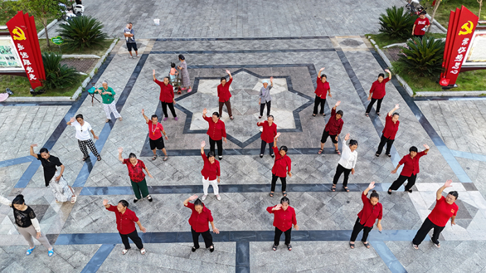 “ 我们社区老年健身队现有队员30多名,其中年龄最大的80岁、最小的50岁,大家通过肢体运动促进通经活络、强身健体。”68岁的郑汝新来自水尾镇大树林村,搬到社区后,他成为社区的一名保洁员,每个月有400元的稳定收入。工作之余,注重养生的老郑自学了八段锦、五禽戏、太极拳、瑜伽等养身操,并带着大家一起坚持规律运动健身,集体锻炼不仅让队员们精神焕发,邻里之间也增进了交流沟通,增强了凝聚力,促进了社区各项工作的开展。