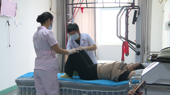 在妇幼保健院妇产康复中心的治疗室里,伍丽娟一边询问患者的症状,一边根据患者的实际情况有针对性的开展针灸治疗。