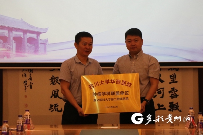 8月10日,在“四川大学华西医院肿瘤学科联盟巡讲——遵义站”活动中,遵义医科大学第二附属医院获“四川大学华西医院肿瘤学科联盟单位”授牌,双方将加强临床、教学、科研等领域的合作。