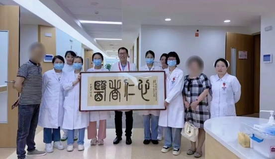 “非常感谢张主任和肾内科的医护人员,我在其他医院也进行了治疗,但是一直没有改善,这次来找张主任,没想到治疗效果这么显著,解决了长期困扰我的蛋白尿问题。这个医者仁心的牌匾代表了我这次治疗中对肾内科医护人员的真实评价,非常感谢张涤华主任,感谢肾内科所有医护人员。”患者赠送牌匾时说。