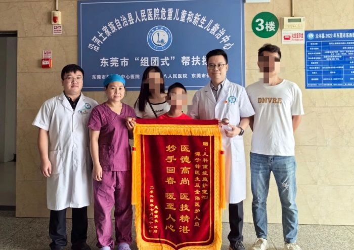 在PICU医护人员24小时不间断的守护下,经过积极的呼吸循环支持、持续的镇静止惊、降温、降颅压等处理后,小雨的体温及颅内压逐渐下降,意识逐渐恢复,无再发抽搐,病情稳定,并顺利康复出院。为表达对谭子锋医师及PICU全体医护人员的感激之情,小雨家属特送来锦旗致谢。