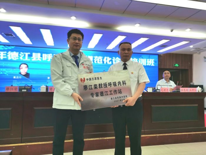 2017年贵州省铜仁市德江县民族中医院签约成为贵州航天医院PCCM专科联盟第一家医院,加入专科联盟前,该院肺病科规模很小,诊疗技术也相对有限,廖江荣定期带领团队前往德江进行帮扶指导,帮助开展了支气管镜、经皮肺穿刺等手术,不仅填补了该院在相关技术上的空白,更满足了患者在家门口就医的需求。